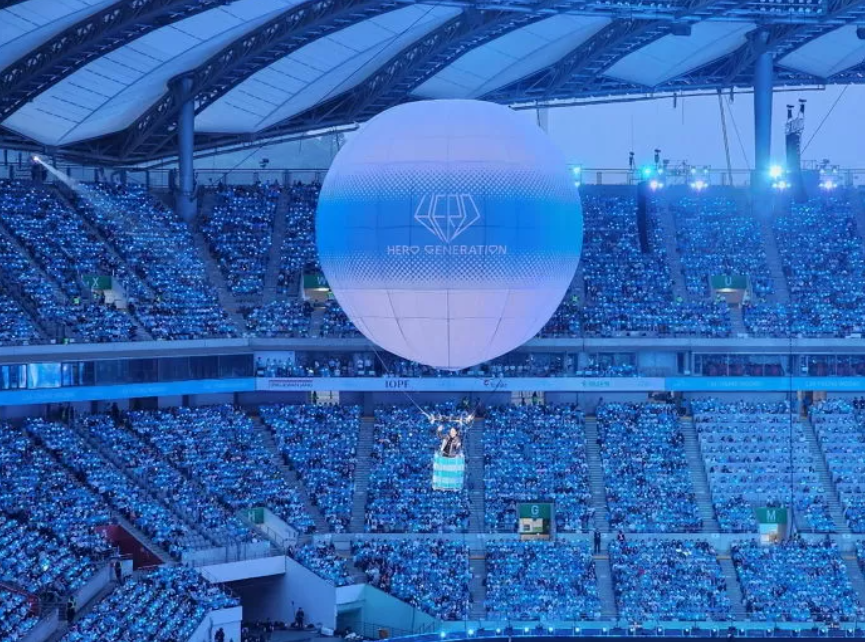 임영웅은 팬들과 조금 더 가까이 하기 위해서 특별한 이벤트도 준비했습니다. 2층에 있는 팬들을 조금더 가까이에서 보기 위해서 일본의 헬륨 기구 전문팀과 협업을 통해서 공중 열기구 퍼포먼스를 펼쳤습니다.