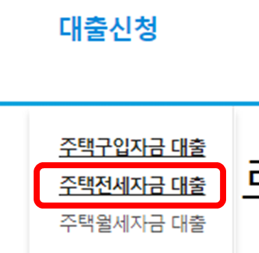 - 로그인 후 '대출 신청' 메뉴에서 '주택전세자금 대출'을 선택합니다.