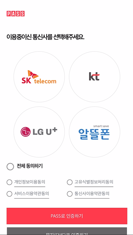 본인의 핸드폰 통신사를 선택한 후 최종인증확인까지 진행하시면 됩니다.