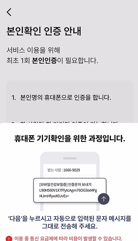처음 실행하면 건강보험증 도용 금지에 대한 안내창이 뜹니다.