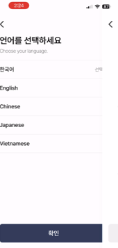 어플에서 사용하고자하는 언어를 선택하시면 됩니다.