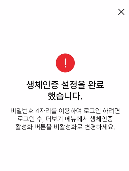 사용하실 비밀번호 4자리와 생체인증까지 설정하고 나면 최종적으로 발급이 완료됩니다.