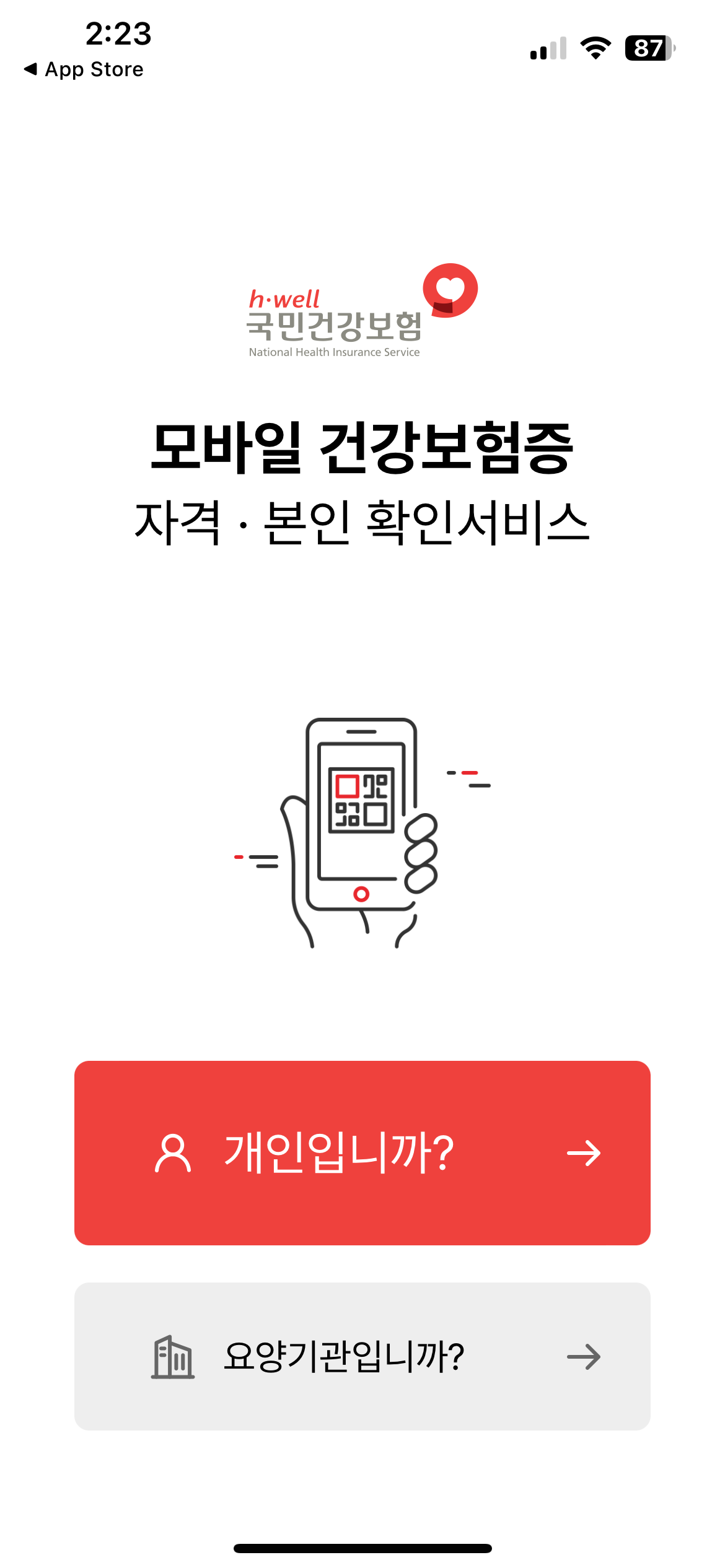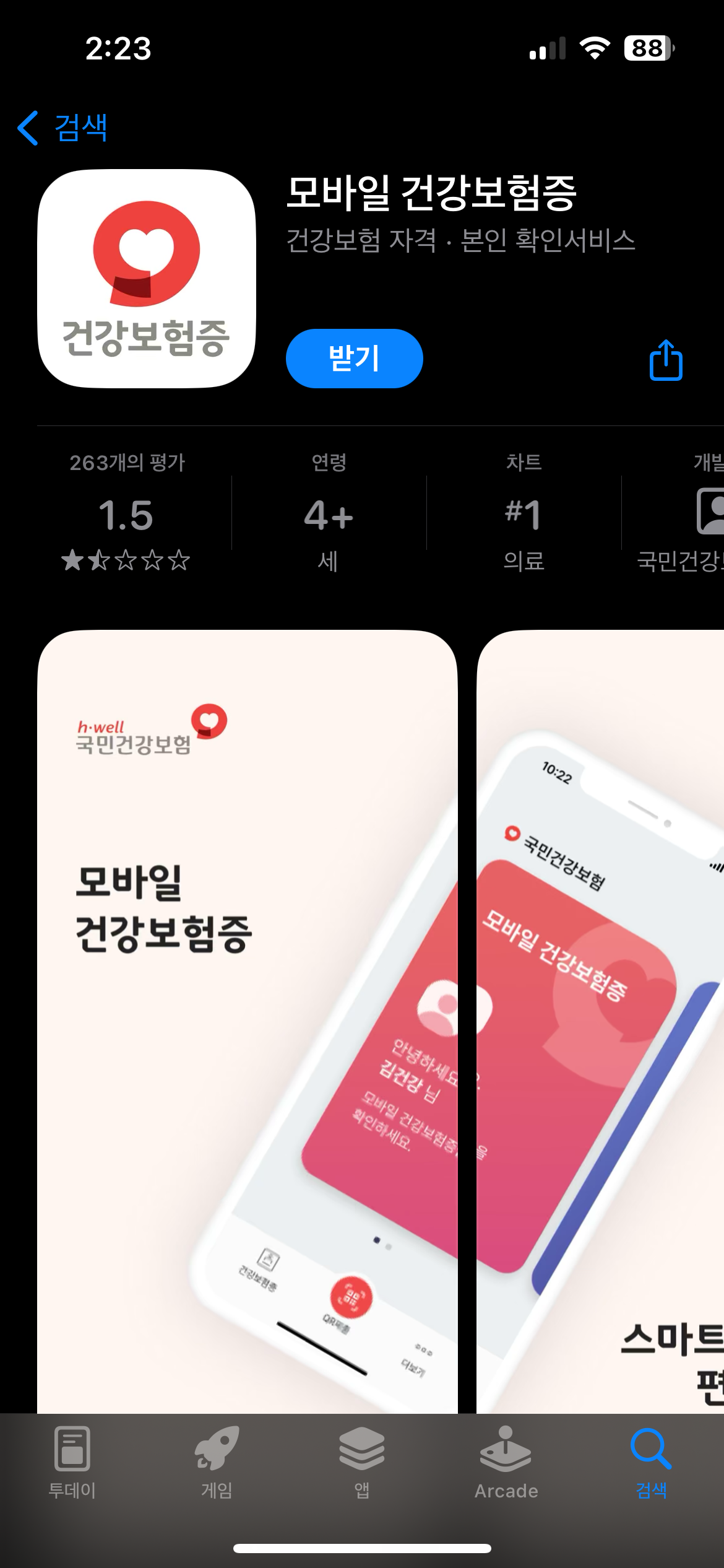 아이폰 사용자는 App Store, 갤럭시는 Goolg Play 앱에서 "모바일 건강보험증"을 검색합니다.