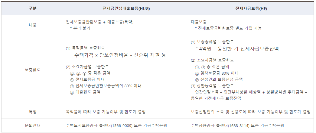 - HF는 대출 보증만 가입, 전세보증금반환보증은 선택